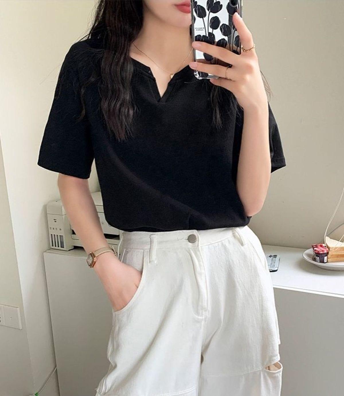Áo thun nữ cổ xẻ cotton mềm mịn, phong cách Hàn Quốc, trẻ trung, dễ phối đồ, phù hợp đi học, đi chơi, dạo phố, tạo điểm nhấn cá tính cho outfit hàng ngày.
