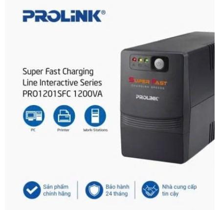 Battery Backup UPS Prolink PRO1201SFC 1200VA/600W, LCD Display Với AVR Tự Động Wide Input Range, Lưu Điện Cho PC Gaming Và Modem ADSL 24/7, Bảo Vệ Hệ Thống Chống Quá Tải Ngắn Mạch Surge, Chuyển Mạch <10ms Siêu Tốc, Acquy 12V/9Ah x2