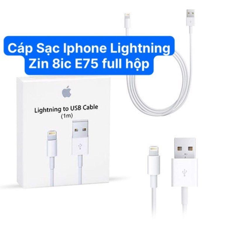 Cáp Sạc iPhone Lightning Zin 8ic E75 Full Hộp, chip cao cấp hỗ trợ sạc siêu nhanh, truyền dữ liệu ổn định, độ dài 1m chuẩn, màu trắng tinh tế, tương thích iPhone 5/6/7/8/X và iPad, bền bỉ vượt trội