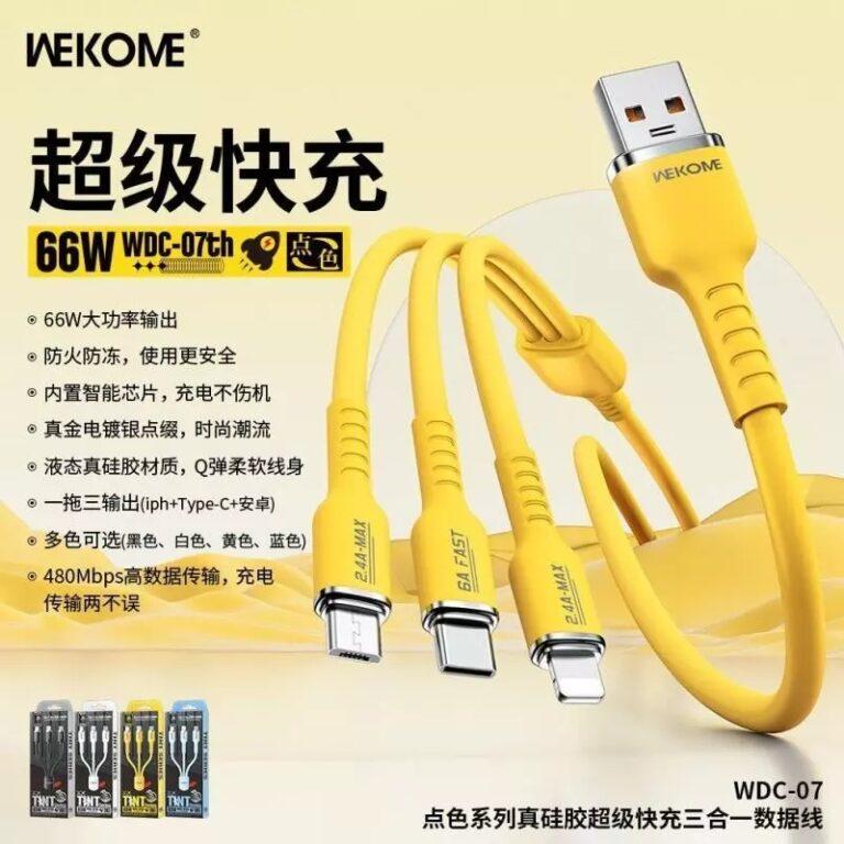 Cáp Sạc Nhanh 65W Wekome WDC-07, 3 Đầu USB Type-C Lightning Micro, Truyền Dữ Liệu 480MB/S, Hợp Kim Kẽm Bền Bỉ, Dây Dệt Hai Lớp Chống Rối, Phù Hợp Điện Thoại Laptop Máy Tính Bảng, Giải Pháp Sạc Đa Năng