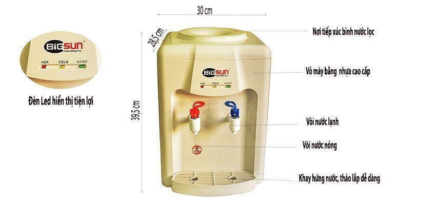Cây Nước Nóng Lạnh BIGSUN BW-41EC, Làm Lạnh Bằng Vi Mạch, 2 Vòi Nước Riêng Biệt, Làm Nóng 550W, Làm Lạnh 75W, Nhiệt Độ Dưới 15°C, Trên 75°C, Dung Tích 300ml/750ml, Thiết Kế Để Bàn Gọn Nhẹ, Phù Hợp Gia Đình, Văn Phòng, Quán Cafe