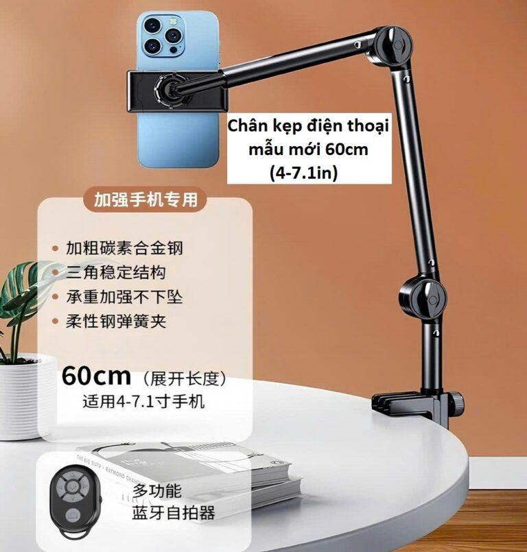 - ĐO KÍCH THƯỚC: Chân kẹp điện thoại dài 60cm, phù hợp smartphone 4-7.1 inch, sản xuất thép hợp kim cacbon bền chắc, có nhiều màu sắc.