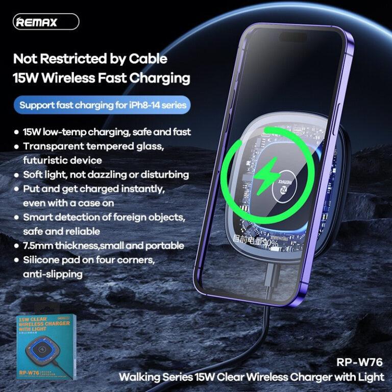 Đế Sạc Nhanh 15W Không Dây Remax RP-W76 là giải pháp hoàn hảo cho những người muốn sạc nhanh, tiện lợi và an toàn. Thiết bị hỗ trợ chuẩn Qi, công suất tối đa 15W, tương thích với iPhone, Samsung, tai nghe TWS và tất cả thiết bị hỗ trợ sạc không dây.