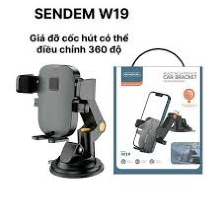 Giá đỡ điện thoại ô tô Sendem W19, thiết kế hầm hố chắc chắn, nhựa cao cấp bền bỉ, độ bám dính mạnh trên kính và taplo, xoay linh hoạt, kẹp giữ điện thoại an toàn chống rơi, hỗ trợ giao tiếp rảnh tay và GPS khi lái xe, giảm thiểu rủi ro giao thông