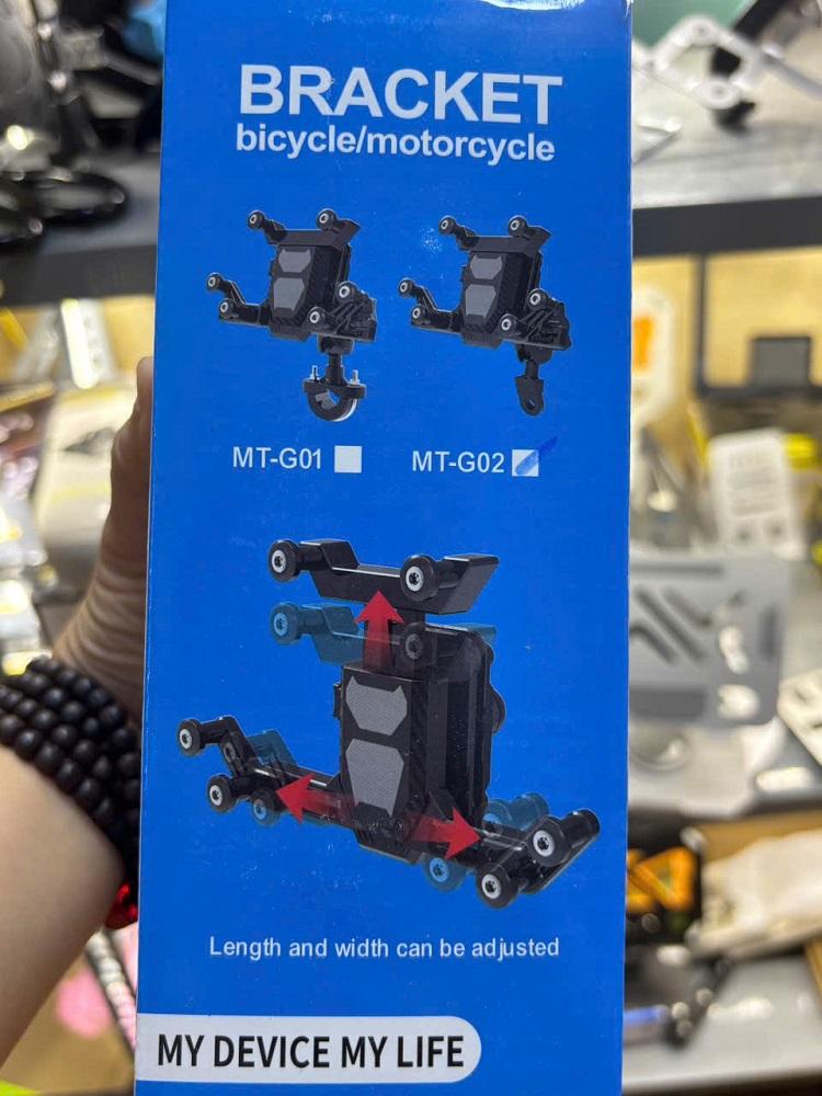 Giá đỡ/kẹp điện thoại MT-G02 là phụ kiện thông minh dành cho người đi xe máy hoặc xe đạp, giúp sử dụng smartphone an toàn và tiện lợi khi di chuyển. Sản phẩm được chế tạo từ nhựa ABS có độ bền cao kết hợp kim loại chắc chắn, mang lại khả năng chịu lực tốt và tuổi thọ lâu dài. Với màu đen sang trọng, giá đỡ phù hợp với mọi phong cách xe.