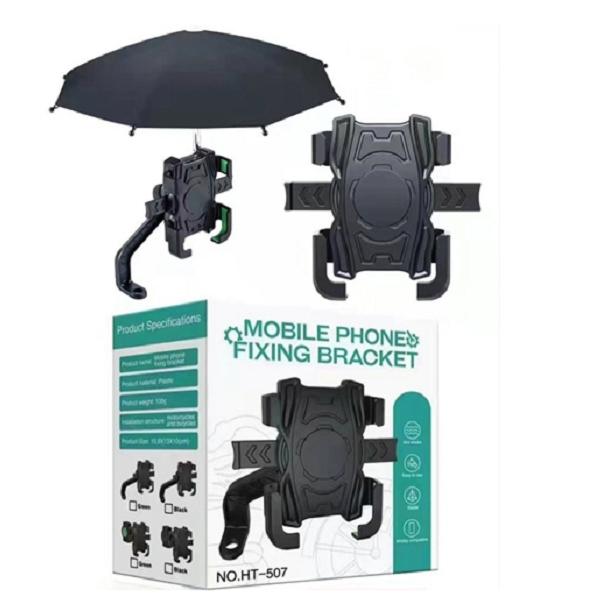 Kẹp điện thoại gắn xe HT-507 kèm dù che nắng mưa, chống thấm nước hiệu quả, chặn tia cực tím, thiết kế ô thủ công dễ thương, tám xương chắc chắn ổn định, bảo vệ điện thoại an toàn khi di chuyển, vừa tiện lợi vừa trang trí, món quà độc đáo cho bạn bè