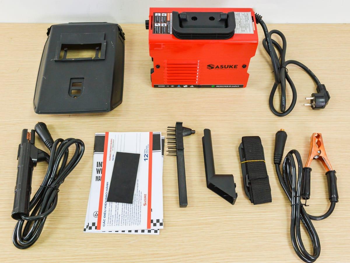 - PHỤ KIỆN ĐẦY ĐỦ Máy hàn que sasuke zx7-200r và lợi ích kìm hàn kẹp mass búa gõ xỉ mặt nạ hàn sẵn sàng sử dụng dành cho thợ hàn lâu năm.