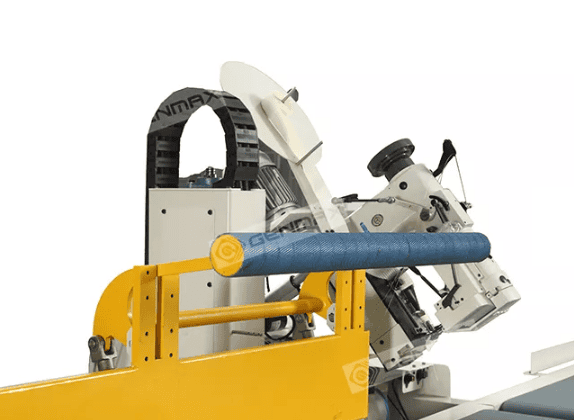 CÔNG NGHỆ TIÊN TIẾN: Máy có tính năng tự động xoay 90°, viền bốn cạnh nhanh chóng, lý tưởng cho ngành nệm và tiết kiệm nhân công.