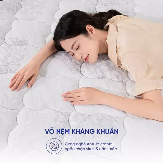 - CHẤT LIỆU CAO CẤP: Nệm làm từ vải kháng khuẩn, cung cấp sự an toàn, phù hợp môi trường nóng ẩm, hoàn hảo cho sức khỏe gia đình.