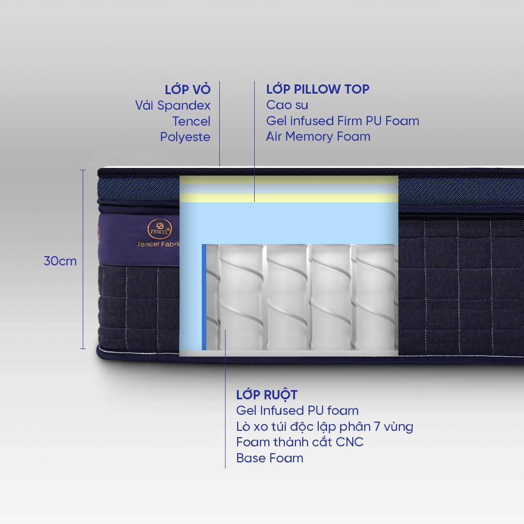 - CÁ NHÂN HÓA: Bao gồm 2 lớp feeling layers cho khả năng tùy chỉnh cảm giác nằm vô tận, hoàn hảo cho giấc ngủ ngon, khuyến khích phát triển sức khỏe xương khớp, phù hợp mọi lứa tuổi.
