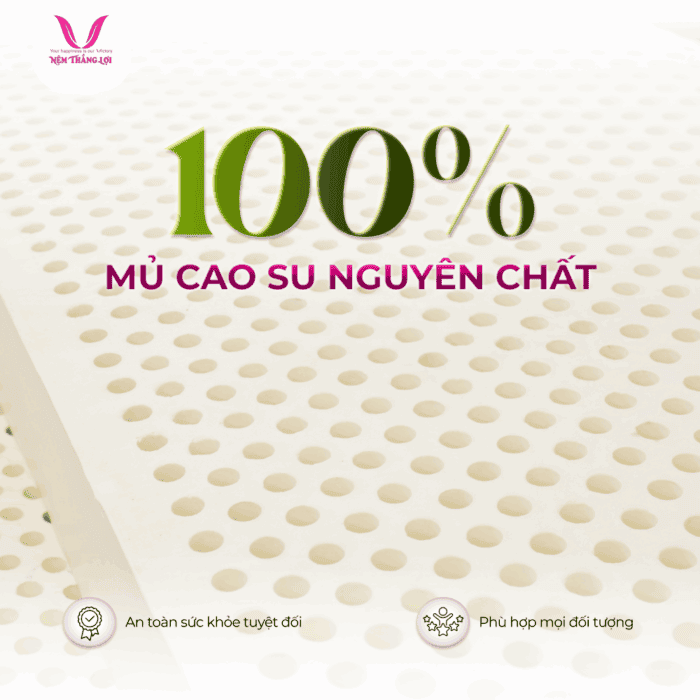 Nệm Thắng Lợi TiTi Cao Su Thiên Nhiên, Double Function, công nghệ tiên tiến, loại bỏ mùi cao su, hương vanilla dễ chịu, kháng khuẩn, thoáng mát, bảo hành 15 năm, giấc ngủ thư giãn.