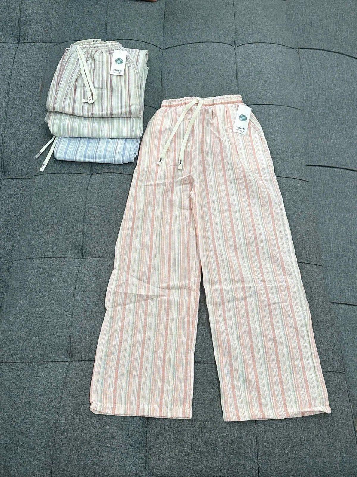 Quần kẻ ống rộng nữ vải đũi nilen nhẹ mát, thoáng khí mùa hè, phong cách Hàn Quốc, dễ phối áo thun, sơ mi, mang lại sự thoải mái và thời trang cho mọi cô gái hiện đại