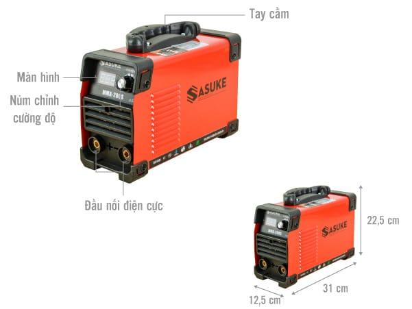 - SIÊU NHẸ DI ĐỘNG Máy hàn que mini Sasuke MMA 200S chỉ nặng 2.5kg dễ mang vác khắp nơi, hoàn hảo máy hàn que mini gia đình và lợi ích vận hành linh hoạt cho thợ sửa chữa tại nhà.