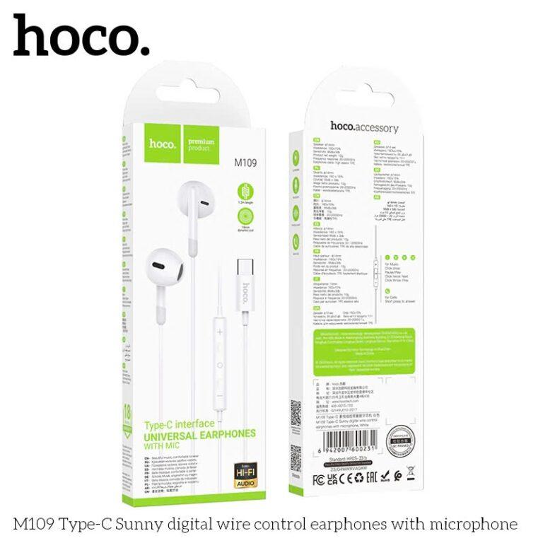 Tai Nghe Hoco M109 Chính Hãng, Âm Thanh HiFi Chất Lượng Cao, Loa 14mm, Dây ABS+TPE Tráng Men 1.2m, Trọng Lượng Nhẹ 10g, Jack Type-C/3.5mm Đa Năng, Micro Tích Hợp, Điều Khiển Nội Tuyến, Tương Thích Huawei, Xiaomi, OnePlus, Samsung, iPhone Type-C, Giải