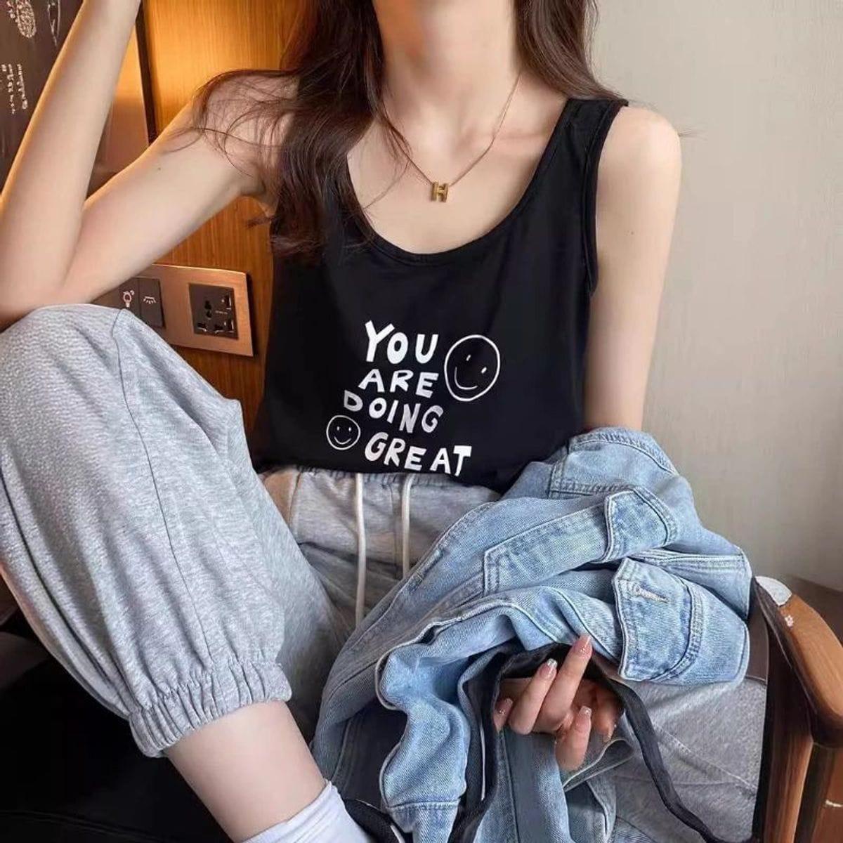 - PHONG CÁCH NĂNG ĐỘNG: Bao gồm 1 áo ba lô in chữ và mặt cười cho khả năng phối đồ vô tận, hoàn hảo cho thời trang nữ, phù hợp độ tuổi 15–30.