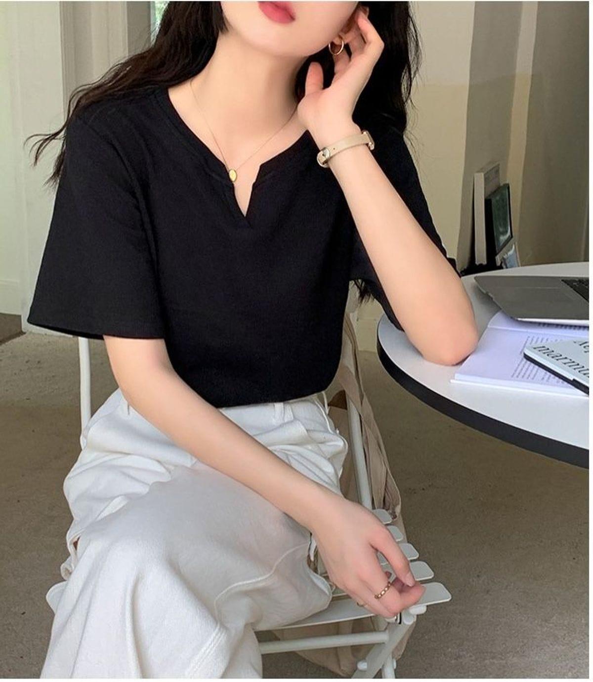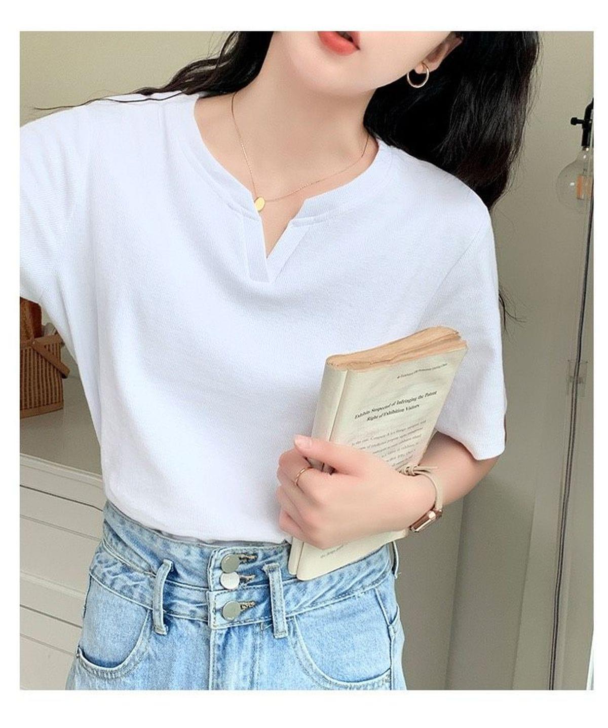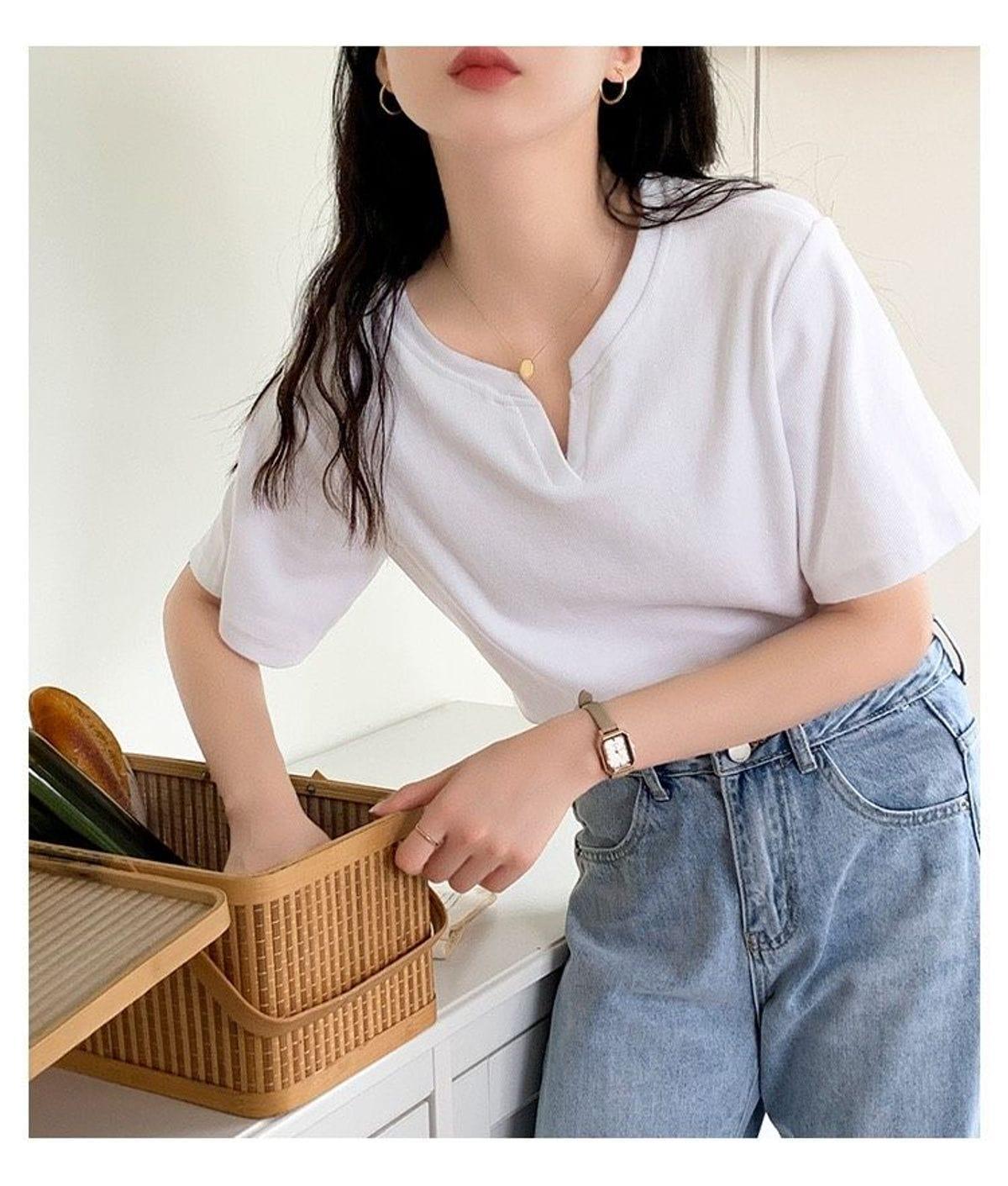 Áo thun nữ cổ xẻ cotton mềm mịn, phong cách Hàn Quốc, trẻ trung, dễ phối đồ, phù hợp đi học, đi chơi, dạo phố, tạo điểm nhấn cá tính cho outfit hàng ngày.