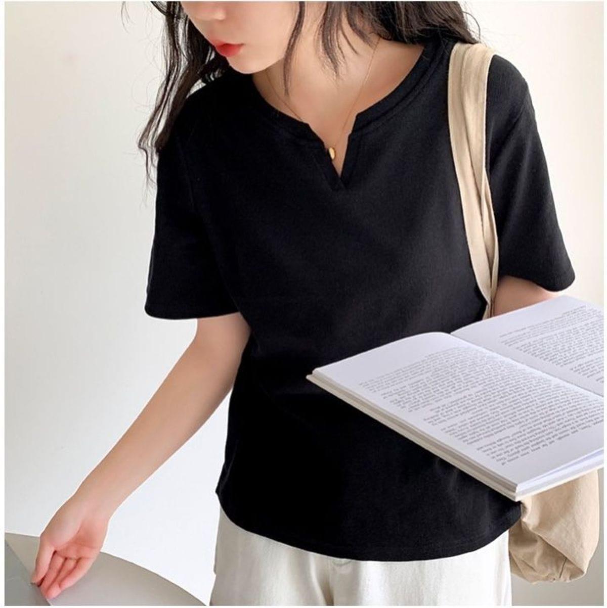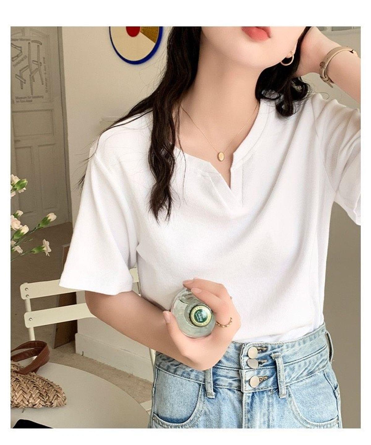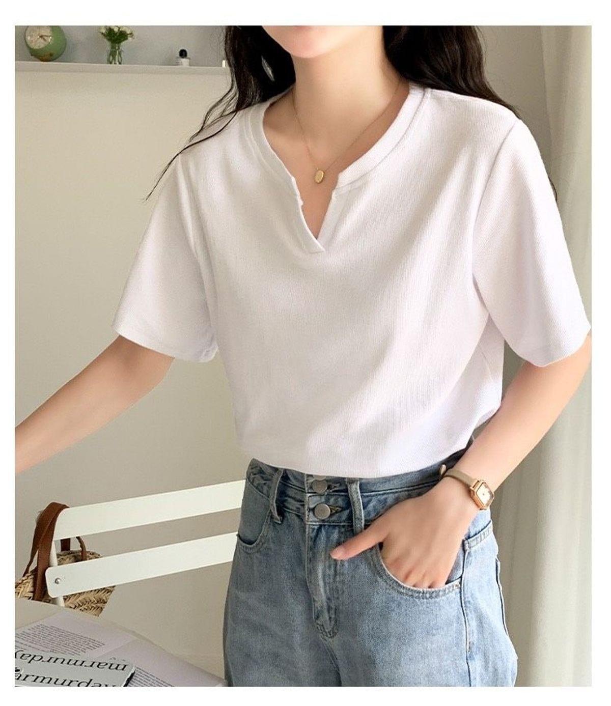 Áo thun nữ cổ xẻ cotton mềm mịn, phong cách Hàn Quốc, trẻ trung, dễ phối đồ, phù hợp đi học, đi chơi, dạo phố, tạo điểm nhấn cá tính cho outfit hàng ngày.