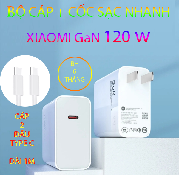 Bộ Sạc Nhanh 120W Xiaomi GaN, củ sạc Type-C công suất cao 20V 6A, sạc nhanh PD 3.0, an toàn, không gây nóng máy, không loạn cảm ứng, tăng tuổi thọ pin, tương thích nhiều thiết bị