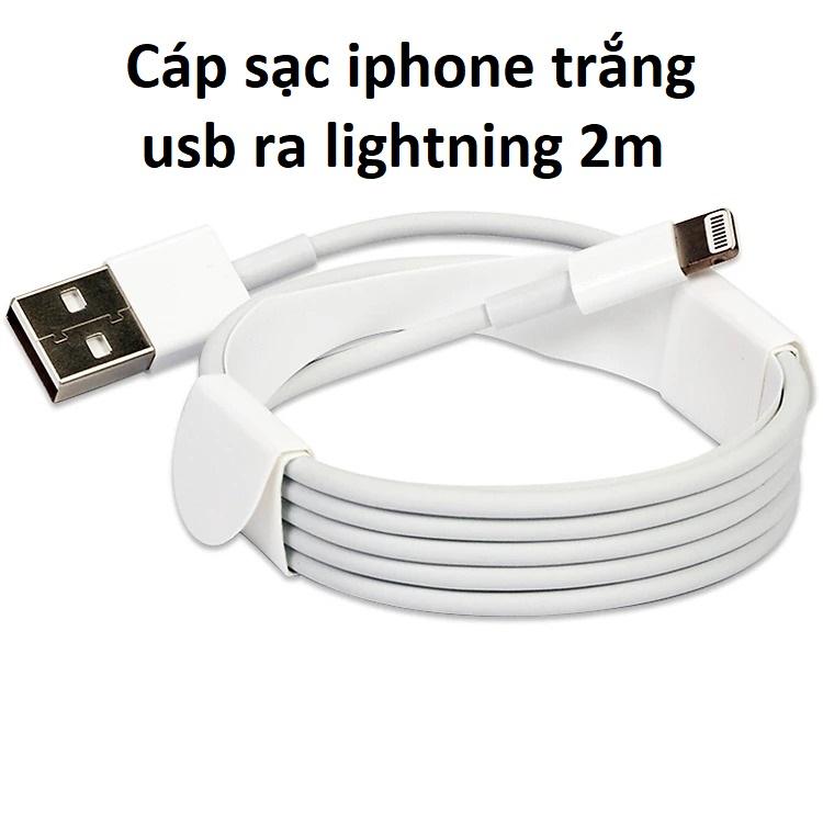 Cáp sạc iPhone trắng USB to Lightning dài 2m, hỗ trợ sạc nhanh 2A, truyền dữ liệu tốc độ cao, phụ kiện chính hãng, dây dài tiện lợi, giải pháp sạc nhanh an toàn cho iPhone/iPad.