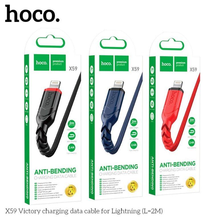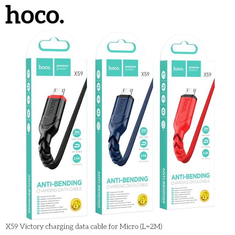 Cáp Sạc Nhanh Hoco X59 60W, dây sạc dài 1m/2m, hỗ trợ 3A Type-C, 2.4A Micro/Lightning, lõi 118 dây đồng truyền tải ổn định, vỏ nylon dệt chống gãy rối, đầu nối TPE bền bỉ, sạc nhanh an toàn cho iPhone, Samsung, Xiaomi, Huawei, laptop.