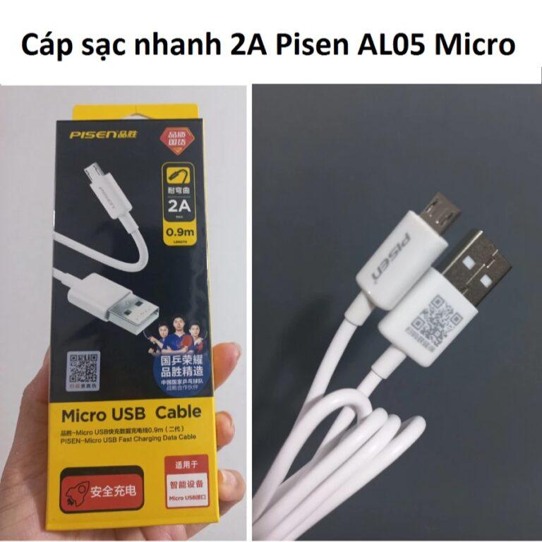 Cáp sạc nhanh Pisen AL05 Micro USB-A to Micro là phụ kiện chính hãng dành cho người dùng smartphone Android và các thiết bị hỗ trợ cổng Micro USB. Với khả năng hỗ trợ dòng điện lên tới 3A, sản phẩm đảm bảo tốc độ sạc nhanh, ổn định và an toàn cho thiết bị.