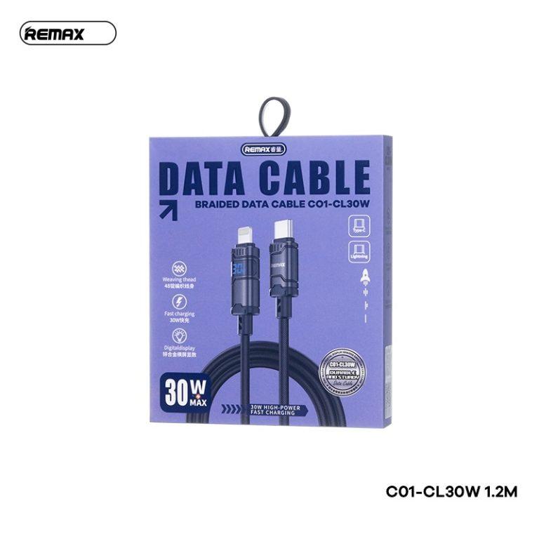 Cáp Sạc Nhanh Remax C01 C-L Lightning, công suất 30W, hiển thị tốc độ sạc rõ ràng, dây bện 48 trục chống mài mòn, truyền dữ liệu chuẩn 480Mbps, dài 1.2m, phụ kiện cao cấp cho iPhone iPad