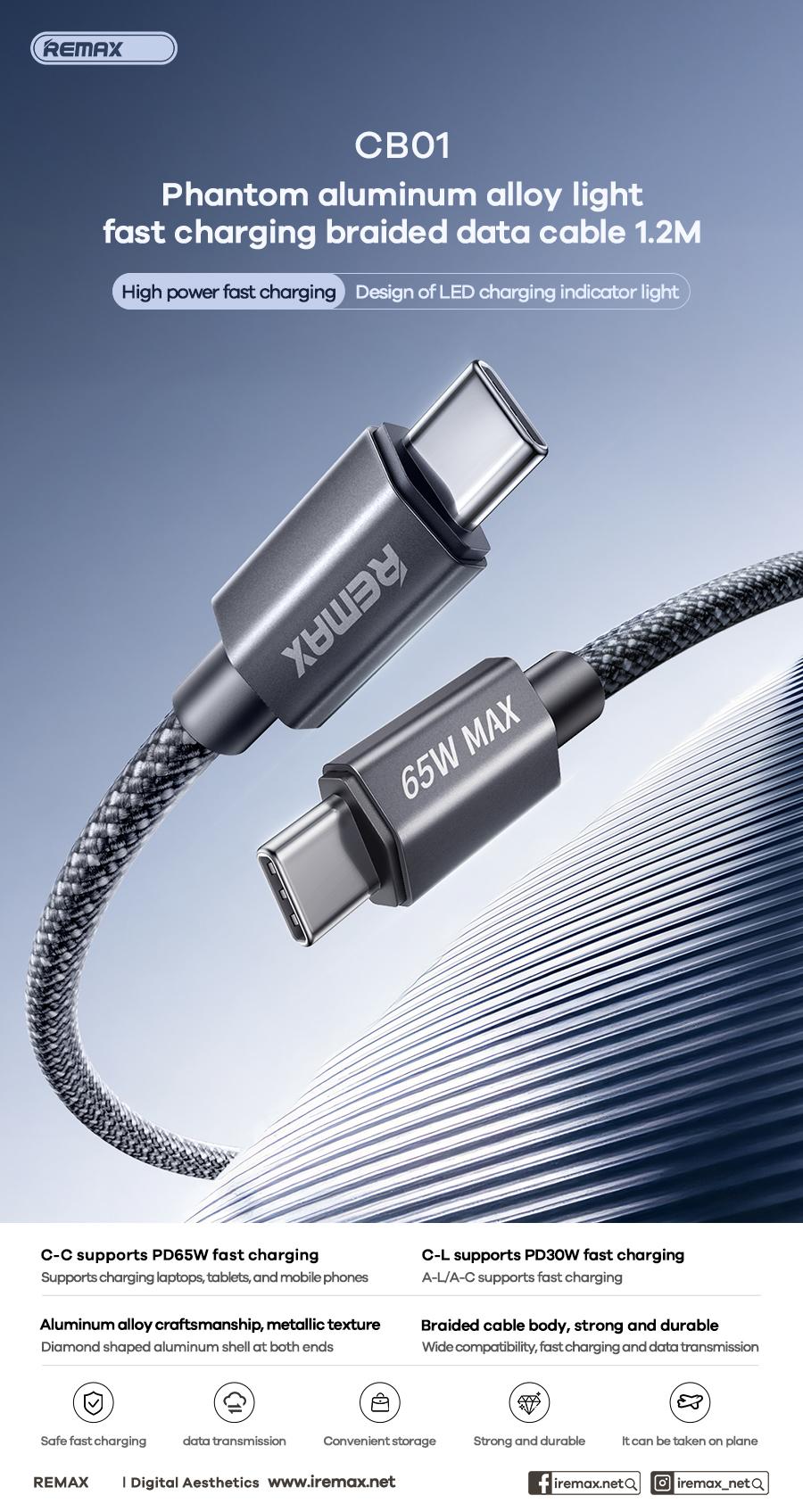 Từ khóa sản phẩm lan truyền: cáp sạc nhanh, cáp Remax CB01, dây sạc Type-C, Quick Charge, truyền dữ liệu nhanh, dây TPE, lưới dệt xám, dây chống rối, cáp bền bỉ, phụ kiện công nghệ, dây sạc iPhone, dây sạc Android, dây sạc laptop, phụ kiện di động chính hãng.