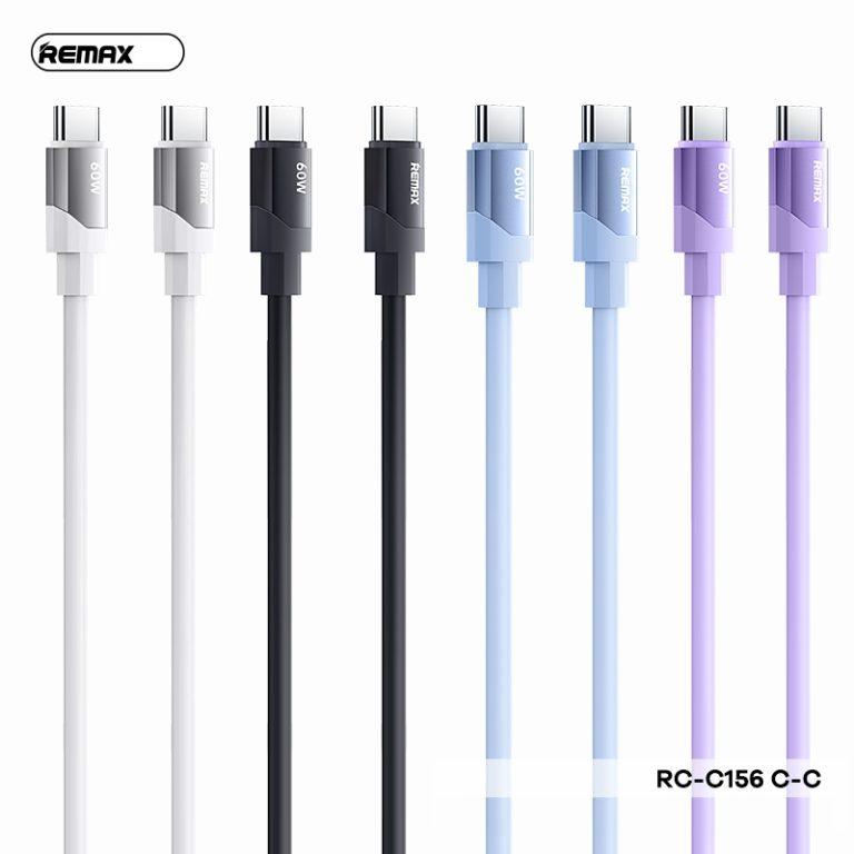 Cáp Sạc Nhanh Remax RC-C156 60W, dây sạc 2 đầu Type-C, chất liệu silicone thân thiện với da, mềm mại mượt mà, tự động phục hồi, vỏ hợp kim nhôm sang trọng, dài bền bỉ, hỗ trợ sạc nhanh và truyền dữ liệu ổn định cho laptop, MacBook, smartphone.