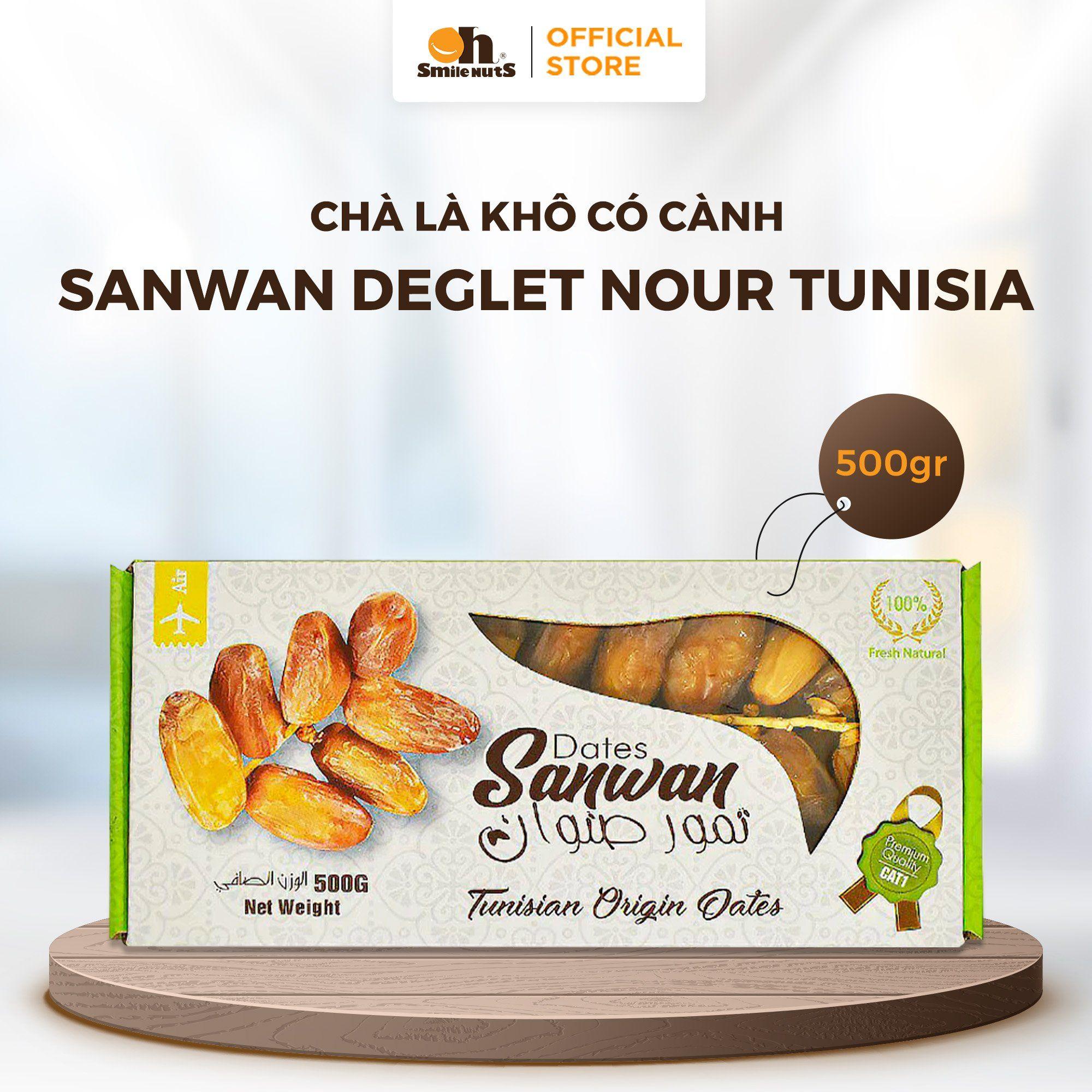 Chà Là Nguyên Cành Sanwan 500g là dòng trái cây sấy tự nhiên cao cấp nhập khẩu trực tiếp từ Tunisia – vùng đất nổi tiếng với những cây chà là trĩu quả được nuôi dưỡng trong khí hậu khô nóng và giàu khoáng chất. Sản phẩm giữ nguyên cành tự nhiên, mang đến trải nghiệm “chuẩn vị sa mạc” – ngọt thanh, mềm dẻo, thơm mật và không hề gắt.