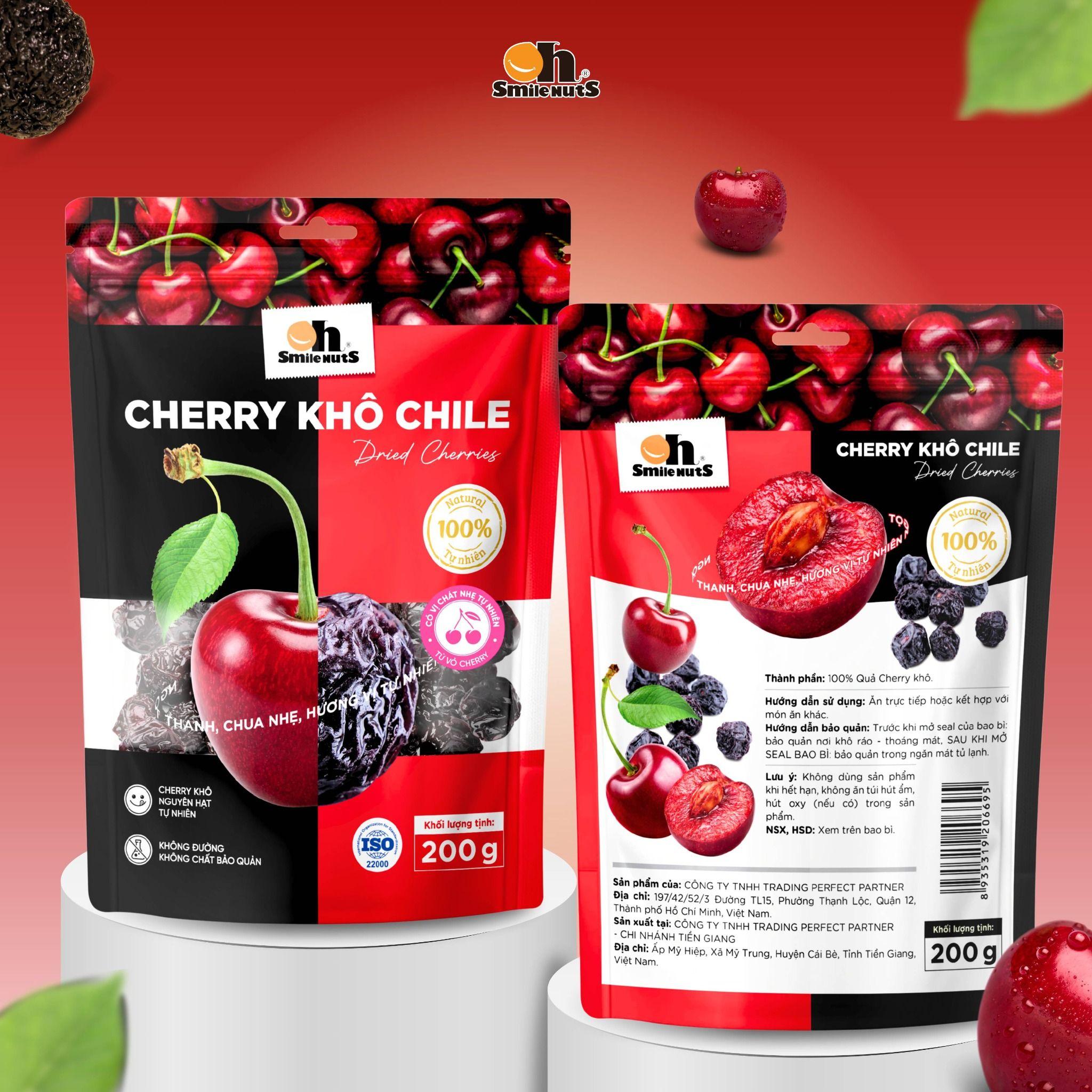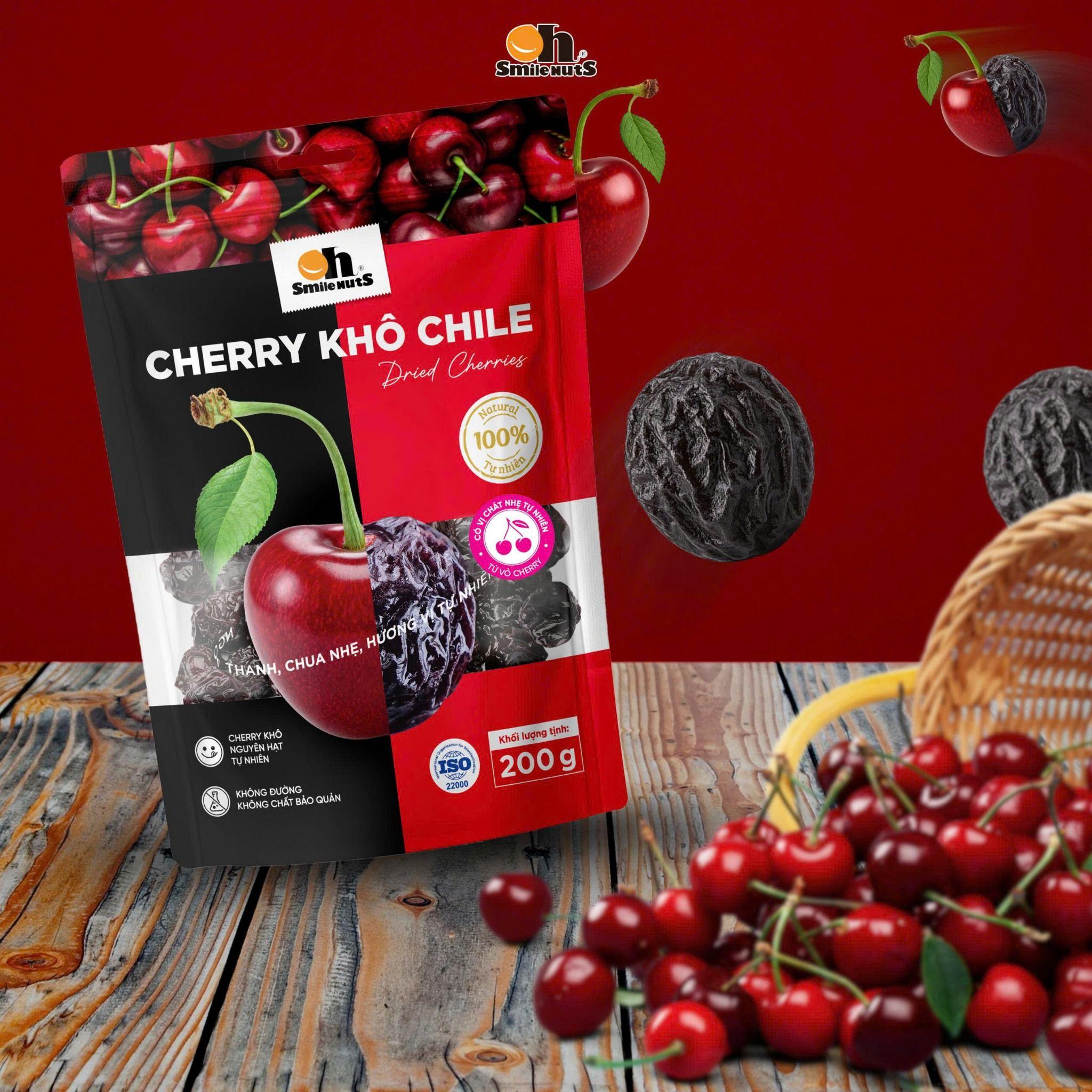 Cherry Khô Chile Oh Smile Nuts, Túi Zip 200g, snack trái cây nhập khẩu mềm dẻo tự nhiên, giàu vitamin & chất xơ, ăn vặt lành mạnh thay kẹo nhiều đường – bổ sung đề kháng & tốt cho sức khỏe mỗi ngày