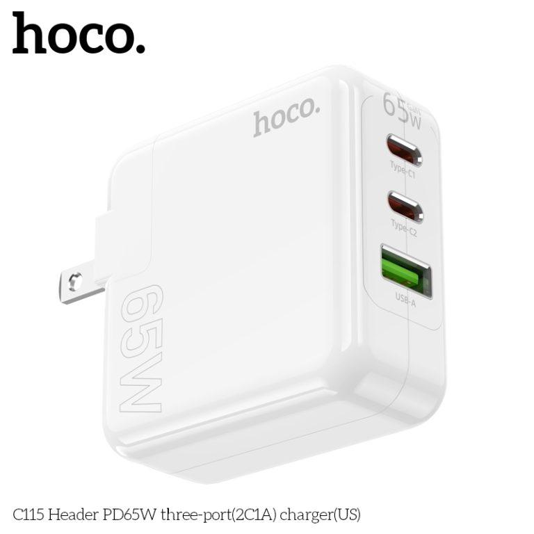 SẠC NHANH ĐA NĂNG: Hoco C115 65W với 2USB + 1 Type-C, công nghệ PD/PPS/QC/FCP/AFC giúp sạc iPhone, Samsung, Xiaomi, Tablet nhanh chóng, tiết kiệm thời gian, phù hợp mọi gia đình và văn phòng.