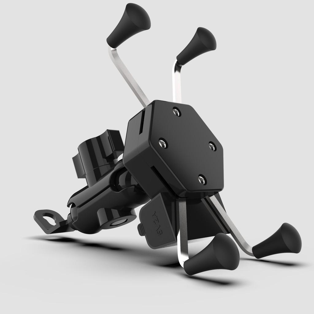 Giá kẹp điện thoại xe máy 4 chân chữ X, có cổng sạc nhanh tiện lợi, thiết kế chắc chắn cứng cáp, giữ điện thoại an toàn chống rơi, kèm dây thun cố định, gắn được ở chân gương hoặc ghi đông, hỗ trợ xem bản đồ và làm camera hành trình