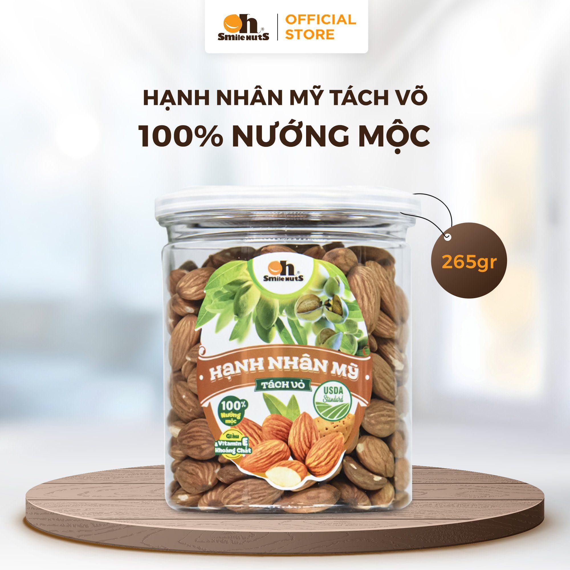 Hạt hạnh nhân Mỹ tách vỏ nướng mộc 265g, Oh! Smile Nuts, snack hạt nguyên bản, giữ vỏ xanh, giàu vitamin E & chất chống oxy hóa, snack cao cấp cho sức khỏe
