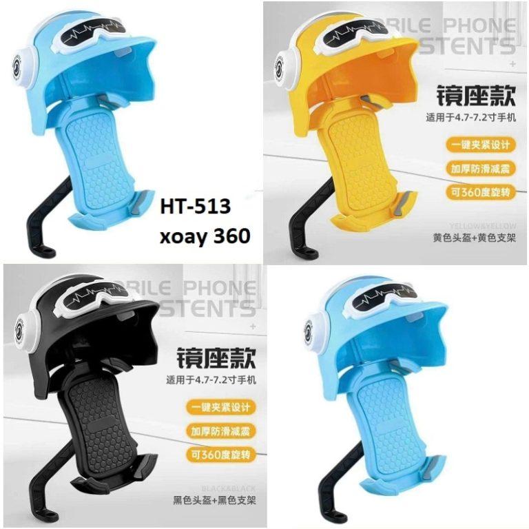 Kẹp nón bảo hiểm điện thoại xe máy HT-513 xoay 360°, thiết kế mũ che nắng độc đáo, chất liệu kim loại + nhựa bền chắc, phù hợp điện thoại 4.7–7.2 inch, tiện lợi cho xem bản đồ, quay video, an toàn khi di chuyển