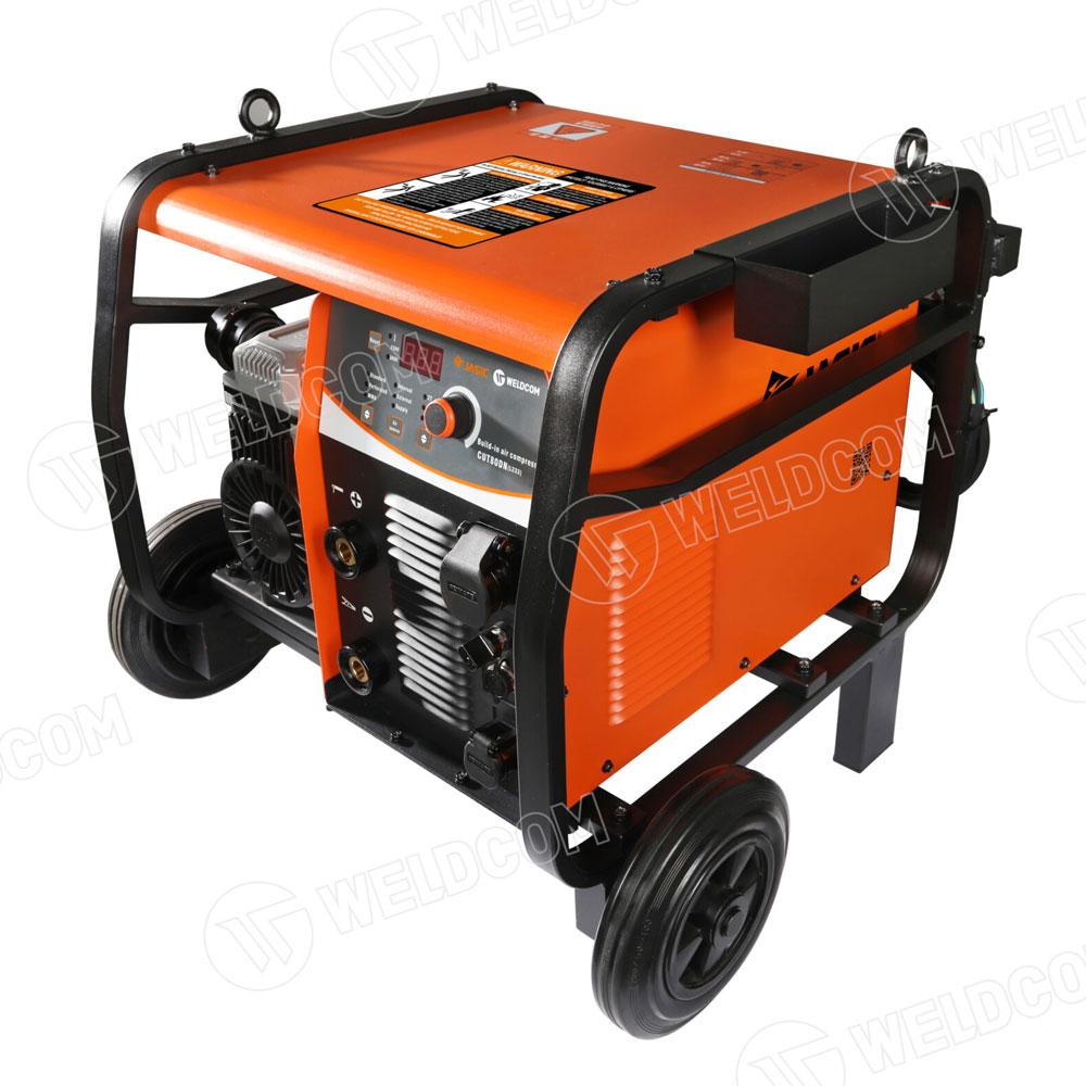Sự đột phá chính là máy nén khí tích hợp bên trong thân máy. Điều này giúp thiết bị hoạt động độc lập mà không cần nối đến máy nén ngoài, đặc biệt phù hợp với công trường, hoặc xưởng có yêu cầu di chuyển thiết bị thường xuyên. Khi cần vẫn có thể nối máy nén khí ngoài để nâng cao công suất.
