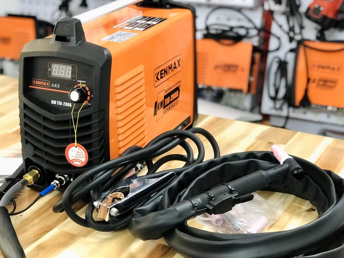 - PHỤ KIỆN ĐẦY ĐỦ Máy hàn tig kenmax km-tig 200a và lợi ích súng TIG dài 5m kẹp mass 300A dài 3m 3 béc + đầu sứ mặt nạ hàn búa gõ xỉ sẵn sàng sử dụng dành cho thợ hàn lâu năm.