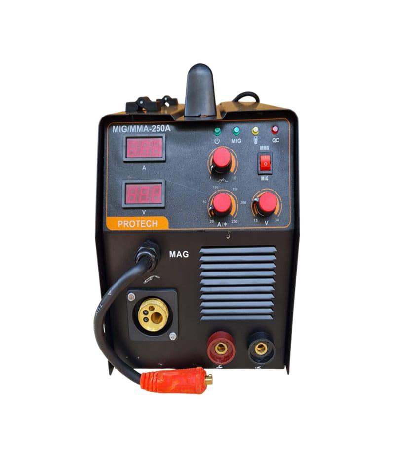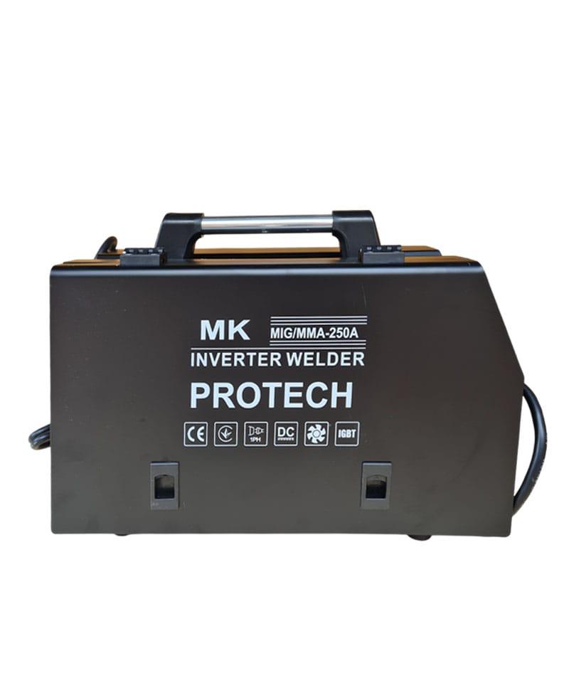 Máy Hàn ProTech MK250A 250A 220V 3 Trong 1 MIG Flux Core Que, Hàn Que 3.2-4.0mm Mạnh Mẽ Mối Hàn Ngấu Sâu Ít Xỉ Trên Sắt Inox Nhôm, Công Nghệ IGBT Tiết Kiệm Điện Độ Bền Cao, Màn Hình LED Hiện Đại Hiển Thị Dòng Hàn