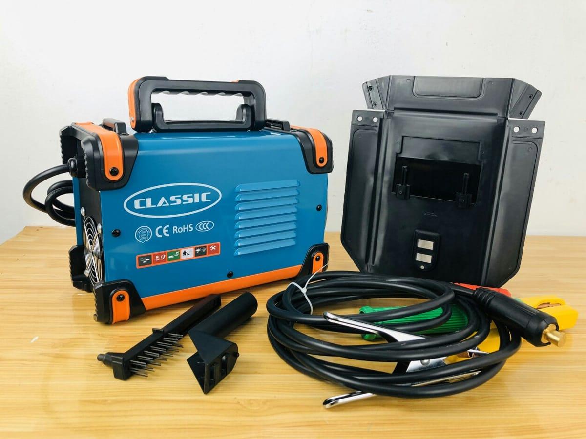 - PHỤ KIỆN ĐẦY ĐỦ Máy hàn que classic zx7-200i và lợi ích kìm hàn kẹp mass búa gõ xỉ mặt nạ hàn sẵn sàng sử dụng dành cho thợ hàn lâu năm.