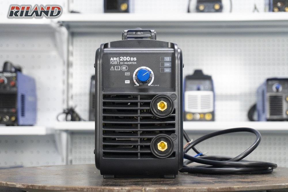 Máy hàn RILAND ARC 200DS, công nghệ IGBT cao cấp, tự động chuyển 220V/380V, tản nhiệt 4 miếng, chống dính que, hàn que Ø2,5-3,2 mm (hỗ trợ 4,0 mm), bền bỉ cho xưởng