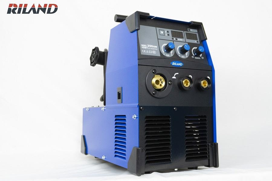 Máy hàn Riland NBC 250GW, công nghệ hiện đại, hàn MIG công nghiệp, điều chỉnh dòng điện điện áp điện cảm, nút đỏ inch tải dây nhanh, hàn ít bắn tóe, mối hàn đẹp, hệ thống tản nhiệt công suất lớn, bảo hành chính hãng 24 tháng