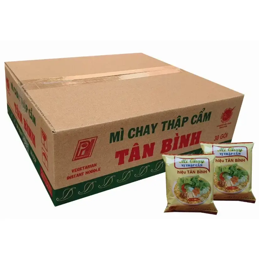 Mì Chay Thập Cẩm Tân Bình 60g thơm ngon thuần chay, sợi mì dai hòa quyện nước súp đậm đà, sản xuất theo công nghệ hiện đại, đóng gói thùng tiện lợi, bảo quản lâu, lý tưởng cho người ăn chay, văn phòng và gia đình bận rộn