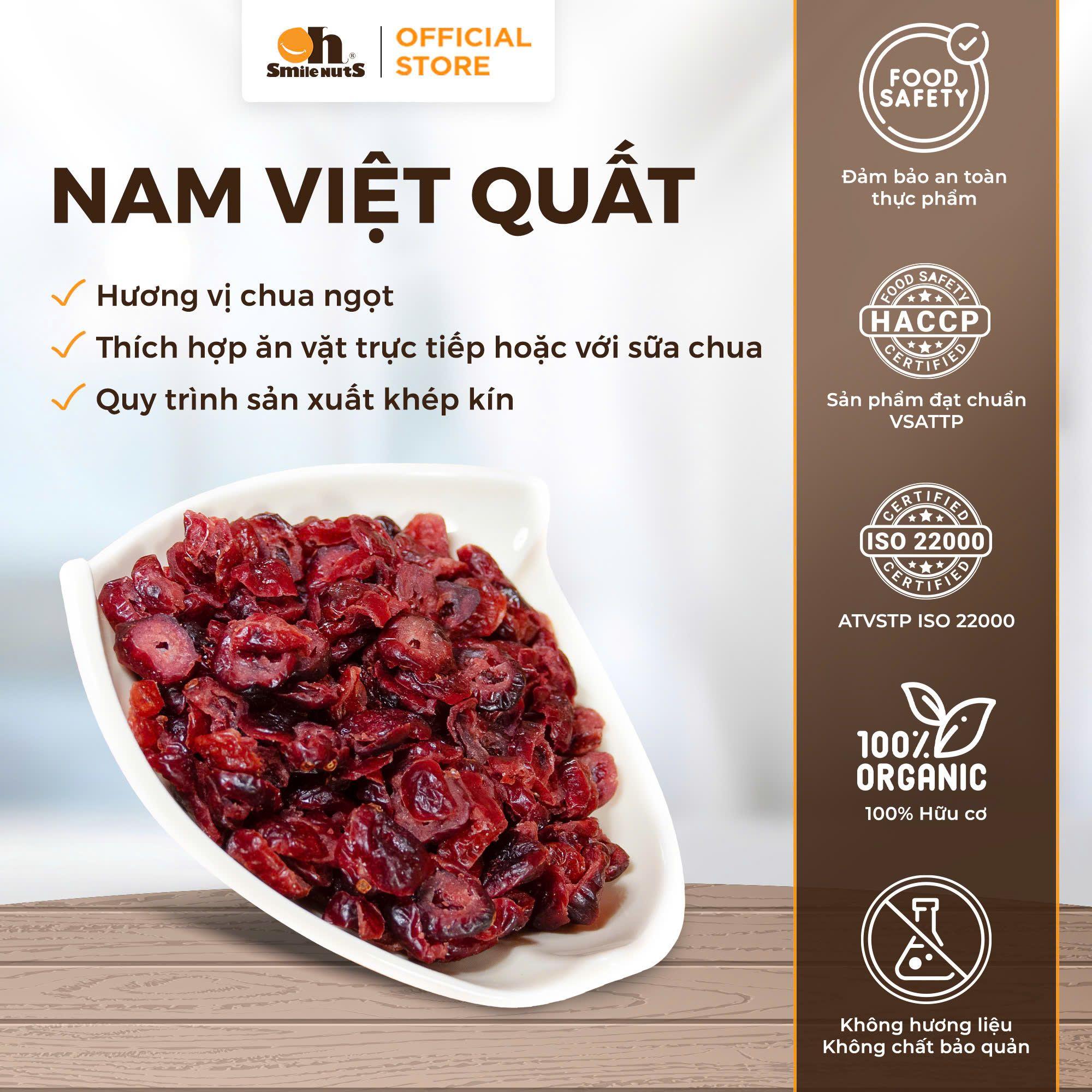 Nam Việt Quất Sấy Lát (Smile Nuts 250 g) là giải pháp hoàn hảo cho snack trái cây khô, cranberry khô nhập khẩu, ăn vặt healthy, giảm cân tự nhiên, chống oxy hóa, bảo vệ tim mạch, hỗ trợ tiêu hóa, làm đẹp da, xuất xứ Mỹ, 100% cranberry sấy lát.