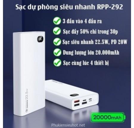 PIN REMAX 20000MAH RPP-292, Power Bank Sạc Nhanh PD QC, LED Hiển Thị, Dung Lượng Khổng Lồ Cho Thiết Bị Di Động