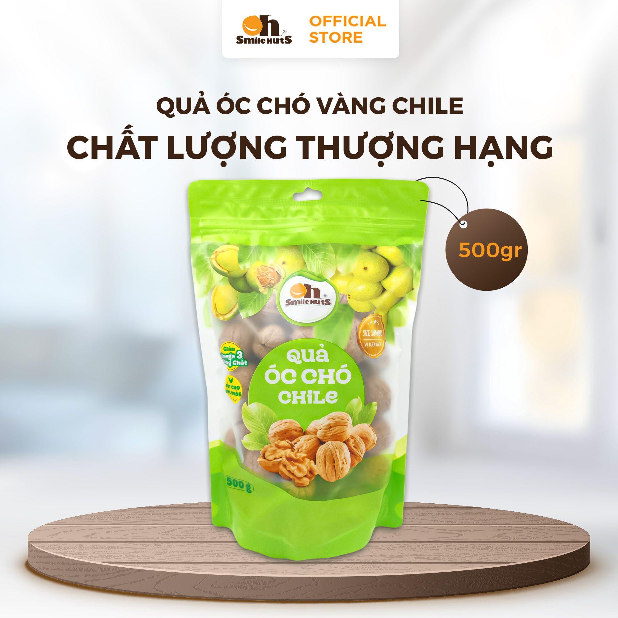 Quả Óc Chó Chile 500g Oh! Smile Nuts túi zipper, hạt óc chó nguyên vỏ giàu Omega-3 & protein, snack nhập khẩu chất lượng cao, bổ sung dưỡng chất cho tim mạch & trí tuệ