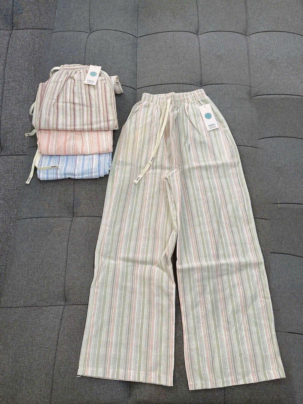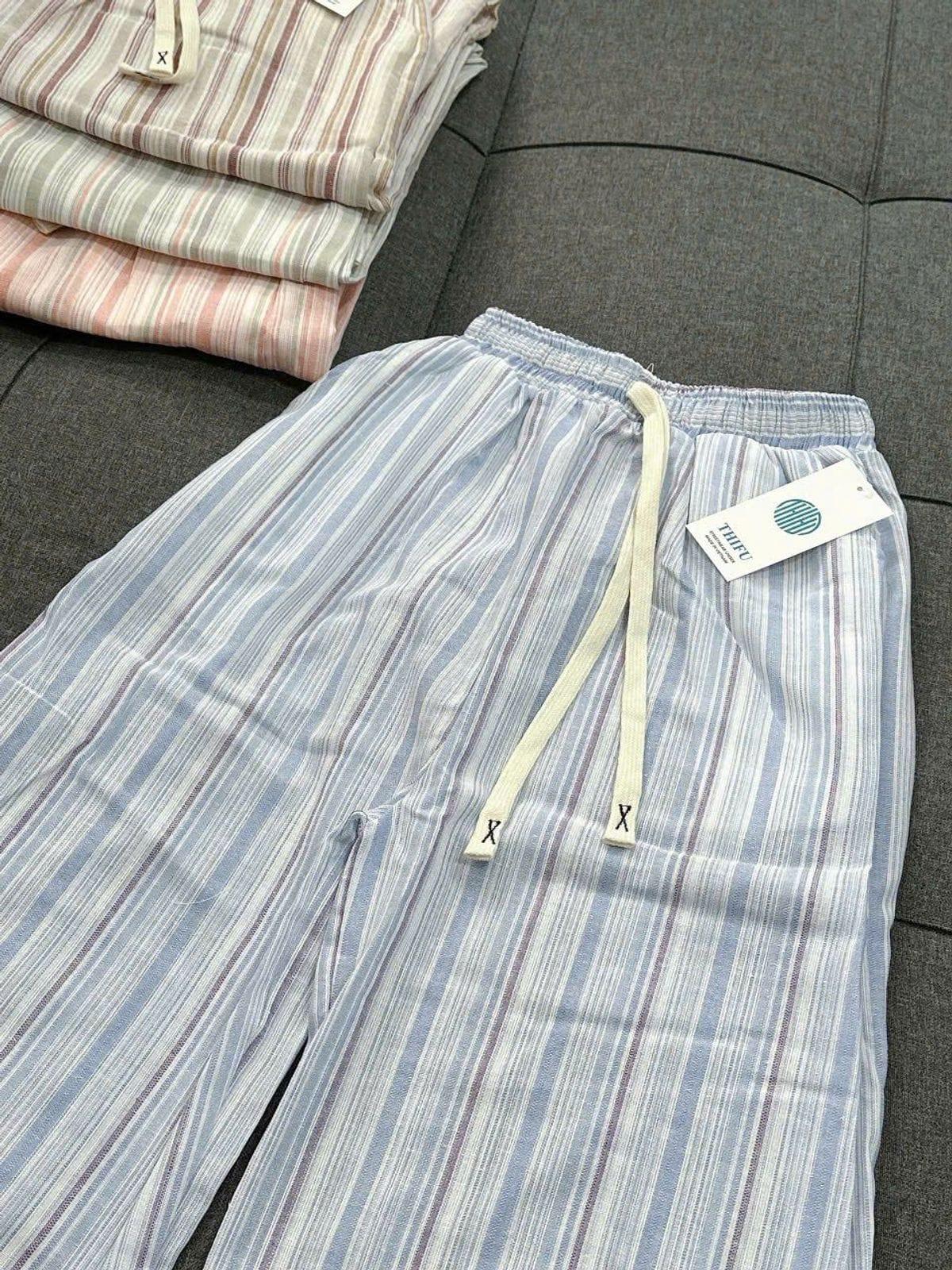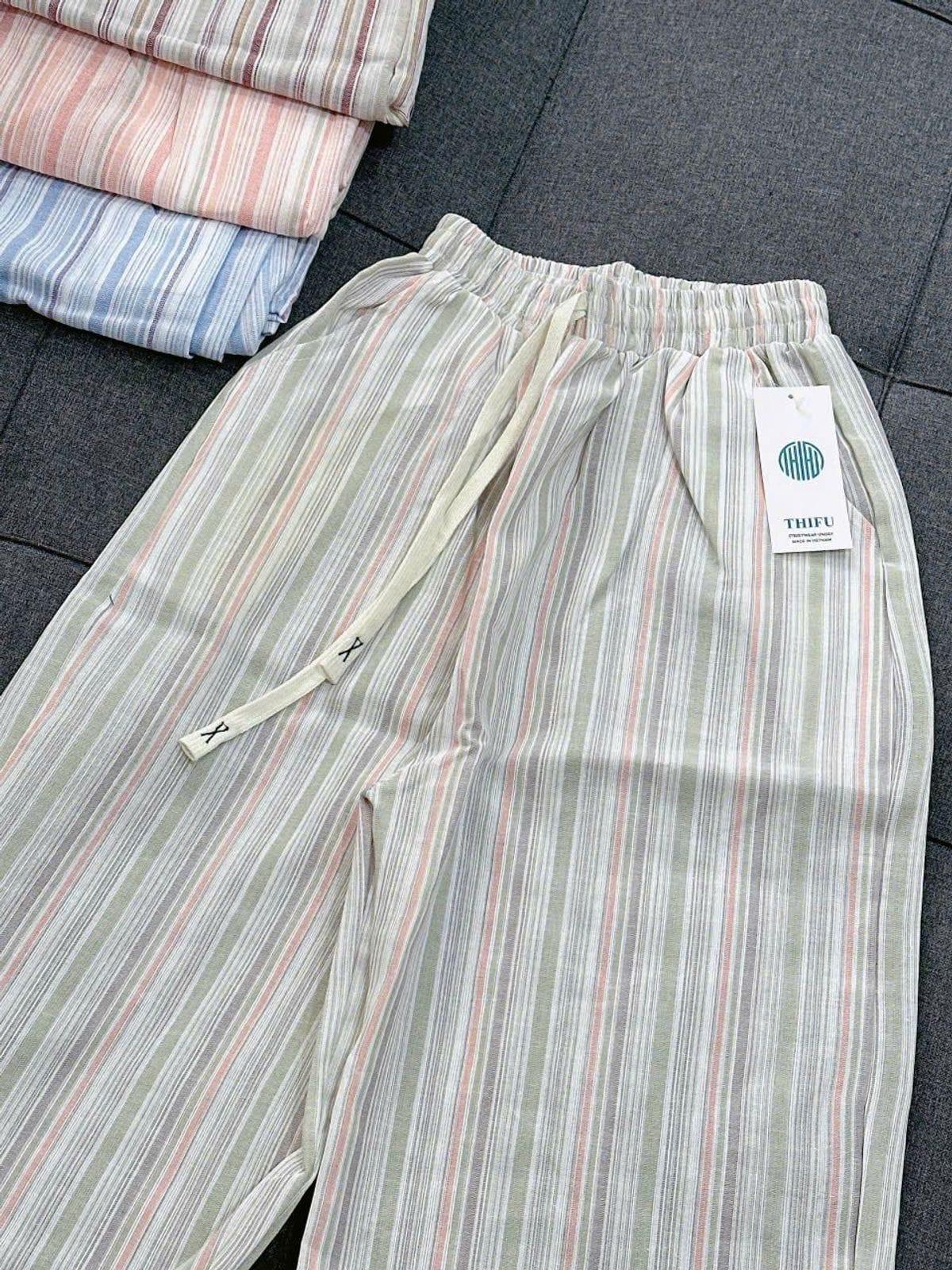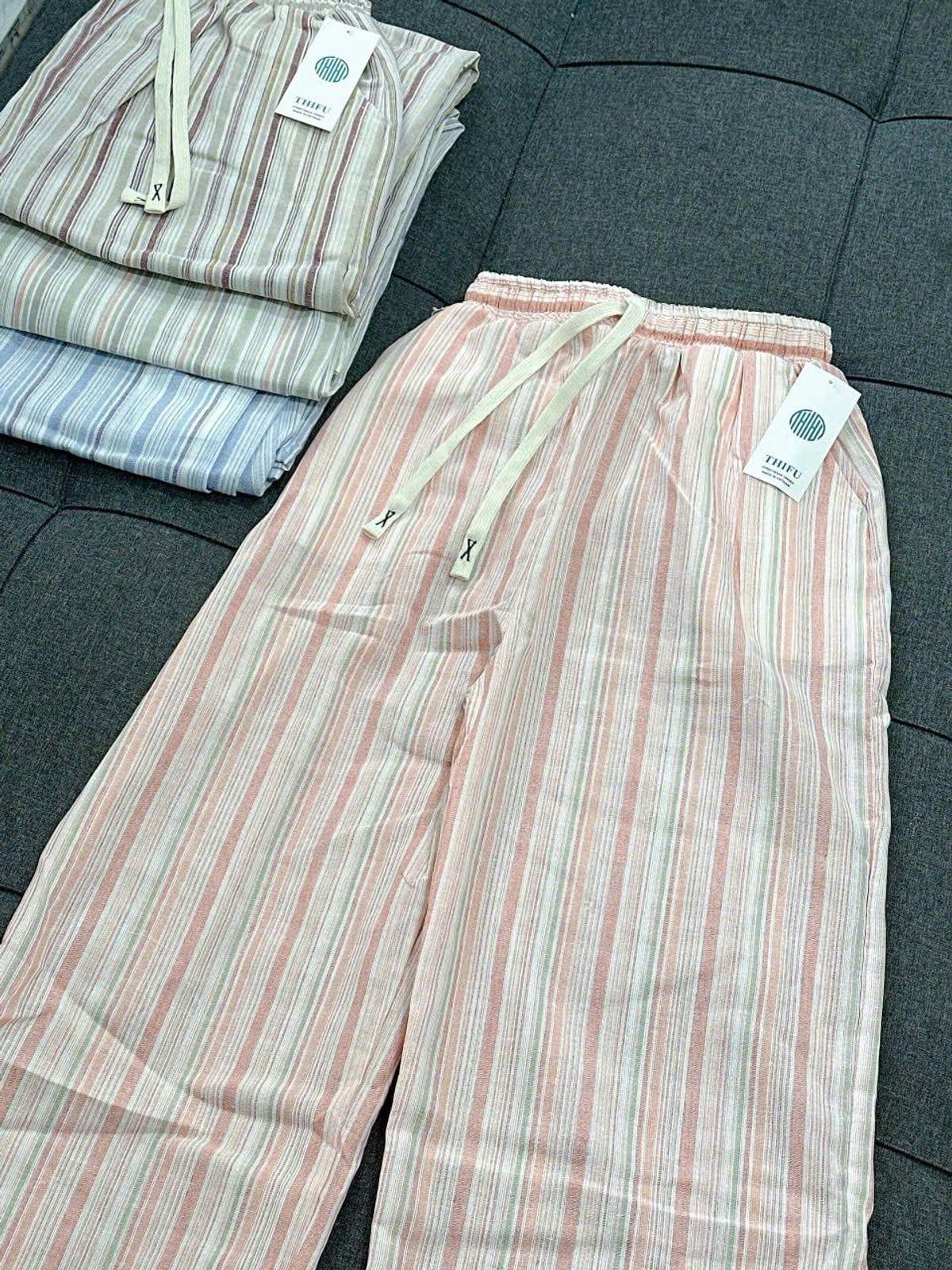 Quần kẻ ống rộng nữ vải đũi nilen nhẹ mát, thoáng khí mùa hè, phong cách Hàn Quốc, dễ phối áo thun, sơ mi, mang lại sự thoải mái và thời trang cho mọi cô gái hiện đại