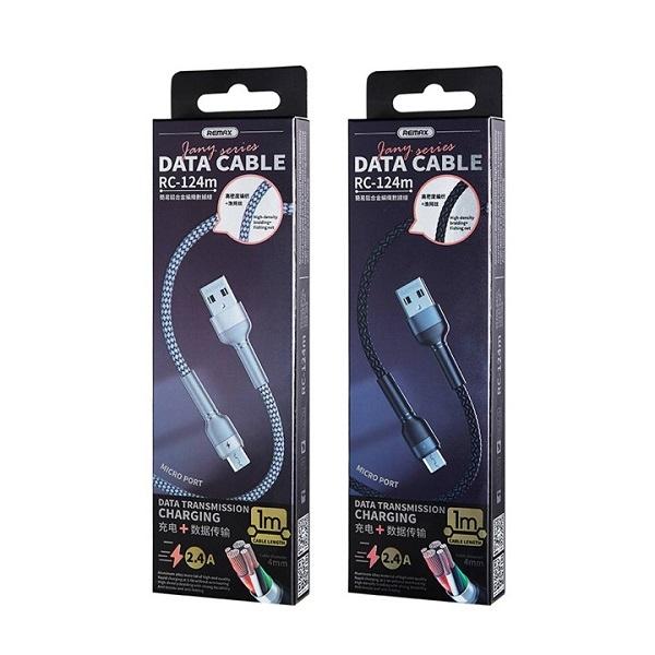 Remax RC-124m cáp sạc nhanh Micro 2.4A, vỏ hợp kim nhôm siêu bền, chống gãy gập, lõi đồng mạ thiếc dày, chip thông minh bảo vệ thiết bị, phụ kiện chính hãng, nâng cao hiệu suất sạc nhanh.