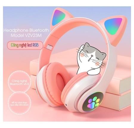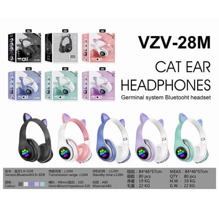 Tai nghe Bluetooth VZV 28M, Âm thanh nổi Hi-Fi, LED RGB đổi màu, pin bền 20 giờ, mic đàm thoại rõ, thiết kế chụp tai chống ồn, phù hợp học tập làm việc giải trí