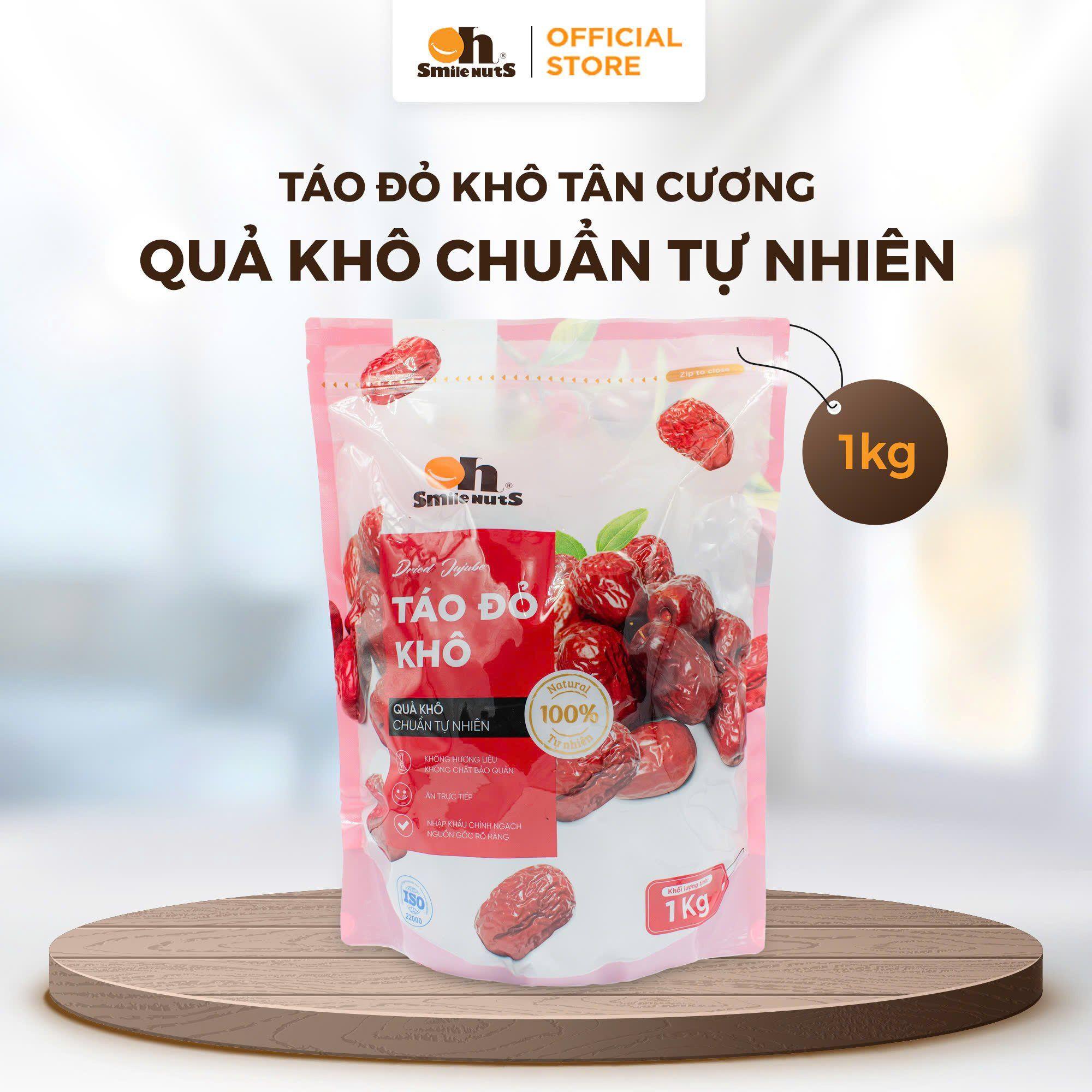 Sản phẩm Táo Đỏ Khô Tân Cương – Túi 1Kg Oh! Smile Nuts là giải pháp hoàn hảo cho trái cây khô, snack ăn vặt lành mạnh, táo đỏ Tân Cương nhập khẩu, ăn nhẹ dinh dưỡng, quà tặng sức khỏe, dates apple dry, táo đỏ khô hữu cơ, ăn vặt giảm cân, bổ sung khoáng chất, ăn sạch sống khỏe.